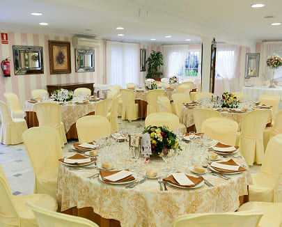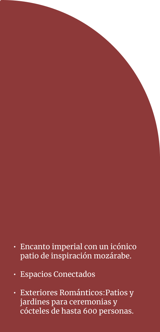 Precedido por un hermoso Patio repleto de yucas y buganvillas, el Salón Las Yucas es nuestro rincón más acogedor. La calidez de sus colores y su elegante decoración con espejos crean una sensación de amplitud y confort, convirtiéndolo en el lugar ideal para celebraciones más personales e íntimas, donde la cercanía y el detalle son los verdaderos protagonistas.