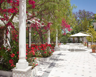 La experiencia se extiende más allá de sus puertas, abriéndose a vastos jardines y amplias terrazas. Aquí, vuestros invitados podrán disfrutar de un cóctel de bienvenida mientras contemplan un magnífico paisaje, ofreciendo un entorno dinámico y lleno de posibilidades que combina la suntuosidad del interior con la belleza de la naturaleza andaluza.
