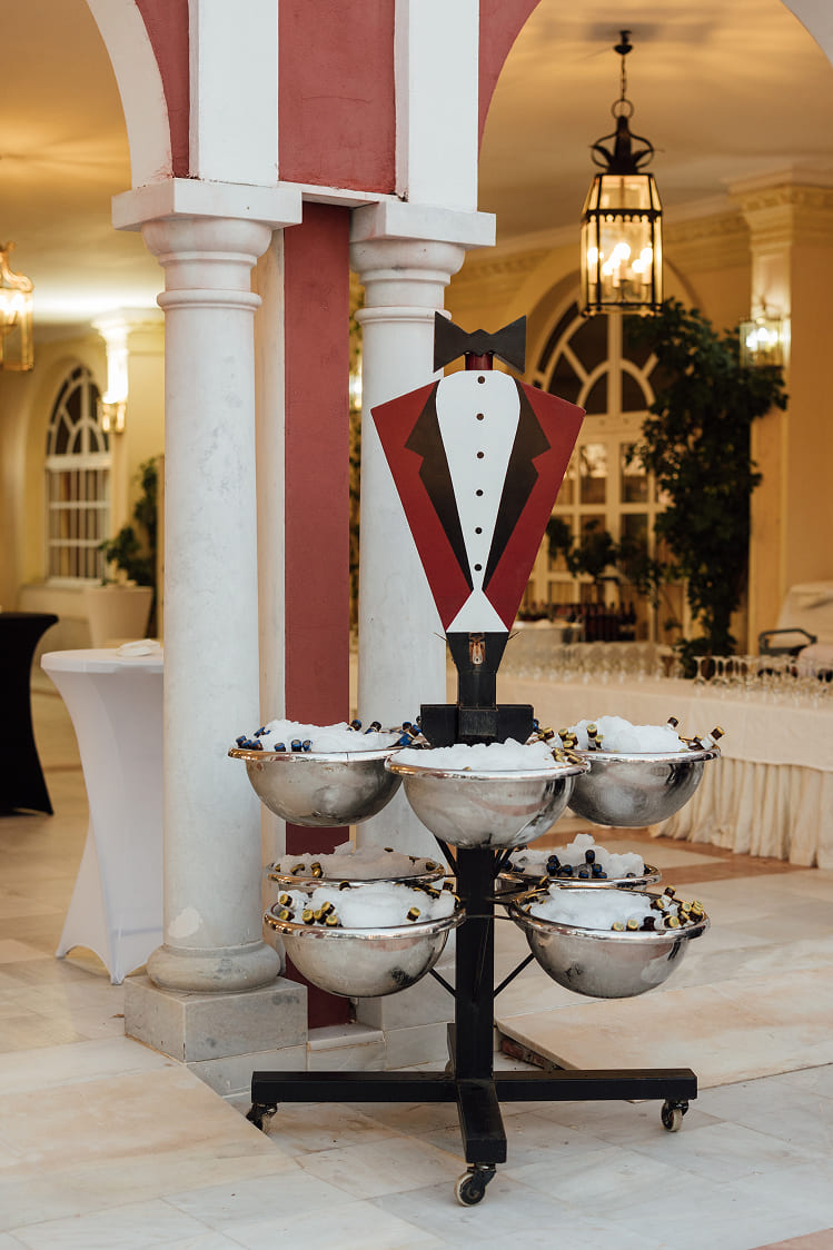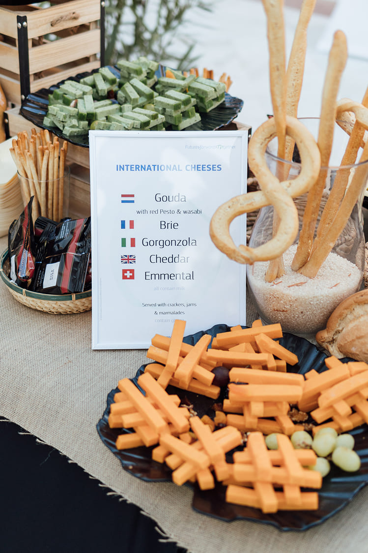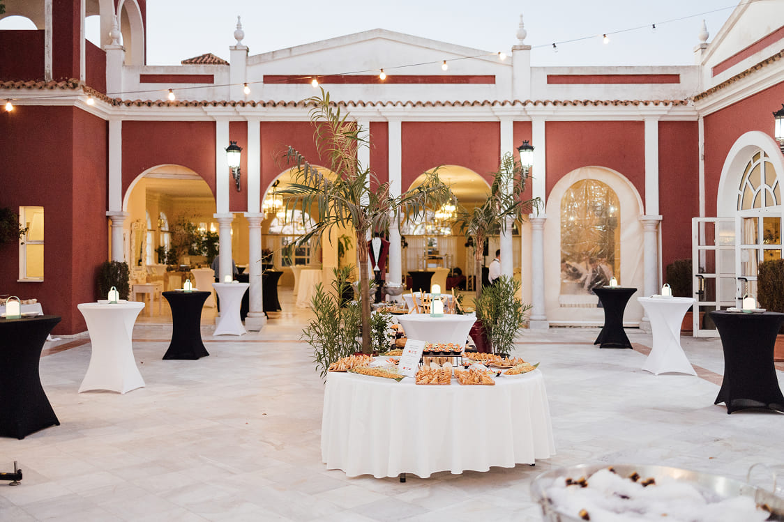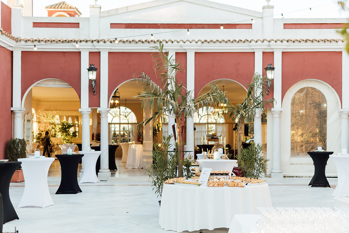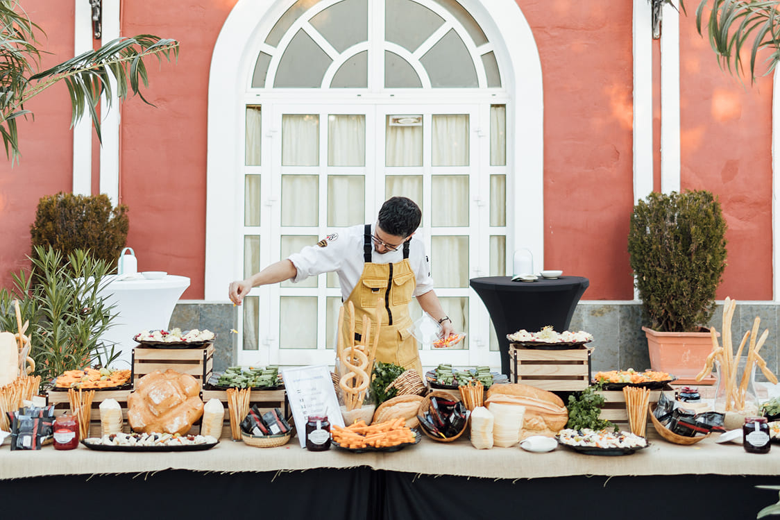 Nuestra Solución: Diseñamos un concepto audaz: «Un Viaje Gastronómico por el Mundo». Transformamos el Complejo Versalles en un recorrido por diferentes «rincones» culinarios. El Patio y la Terraza se llenaron de vida con estaciones temáticas como el «Rincón de Quesos Internacionales», el «Rincón de Oriente Medio y África» o el «Punto de Sabores Asiáticos», permitiendo a los invitados explorar, degustar e interactuar.